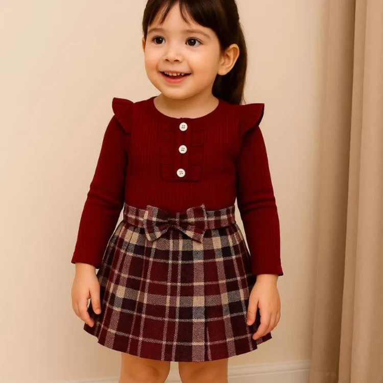 بلوز دامن چارخونه پاییزه اماده ارسال