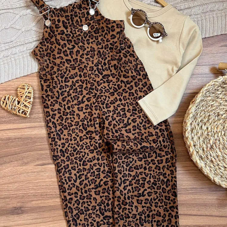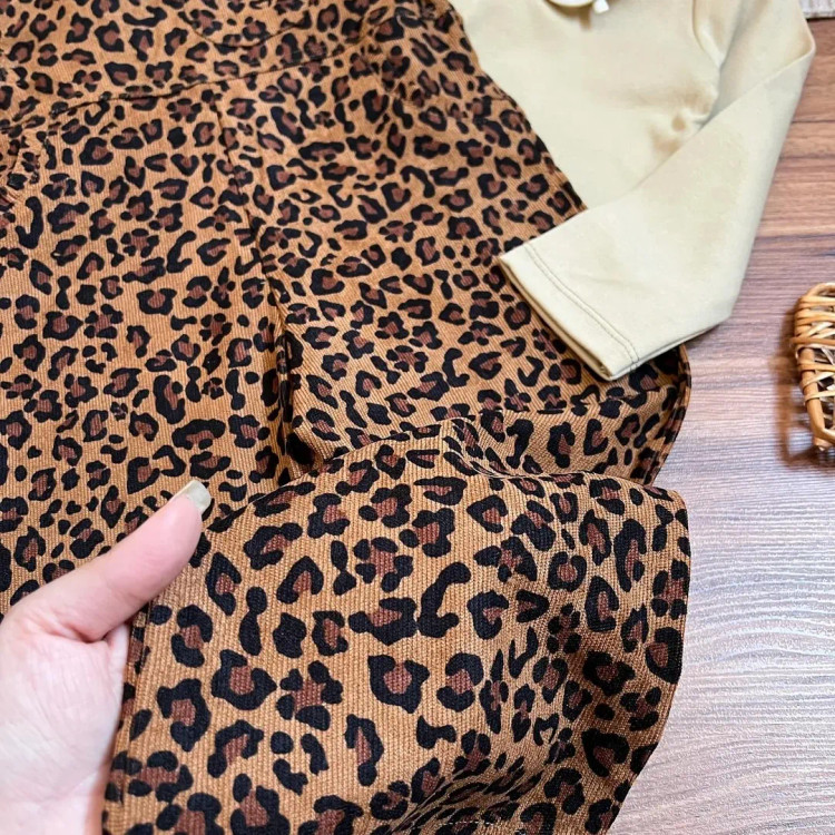 ست دوتیکه بلوز و سرهمی پلنگی با بلوز نخ پنبه و بیلر مخمل کبریتی. قد بیلر تا چند سانت قابل تنظیم میباشد