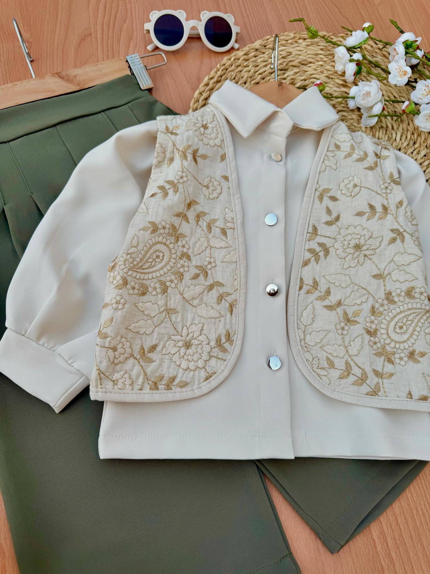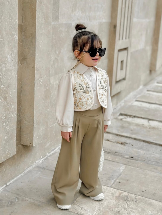 سه تیکه شومیز و شلوار و ژیله سوزن دوزی جنس کرپ مازراتی درجه یک